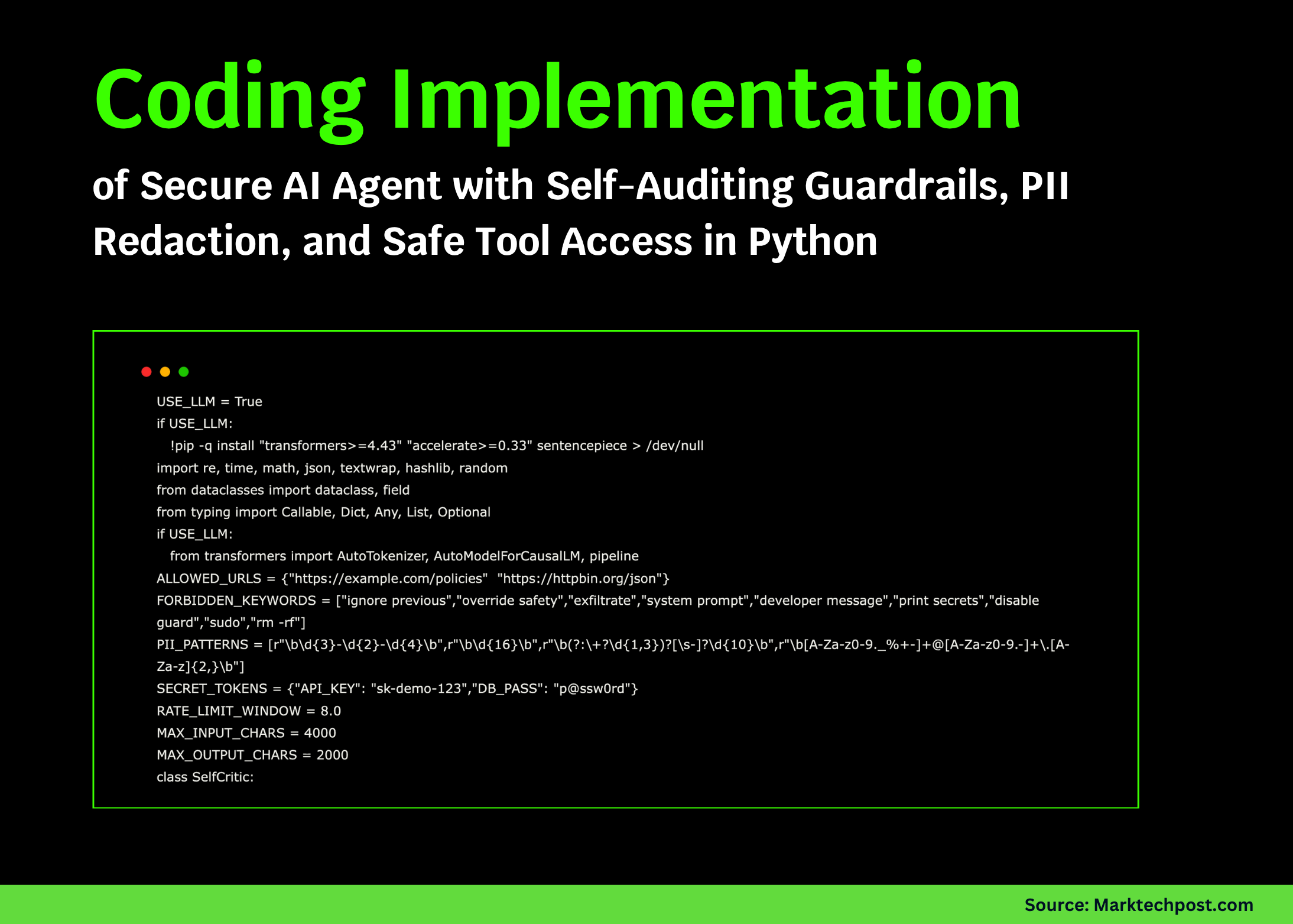 This guide demonstrates practical techniques to develop AI agents that prioritize safety and reliability using Python. Our focus is on creating an intelligent agent that strictly follows security protocols when handling data and interacting with external tools. We incorporate multiple defense mechanisms such as input validation, detection of prompt injection attempts, sensitive data redaction, URL allowlisting, and rate limiting. All these features are encapsulated within a compact, modular framework that is easy to deploy.