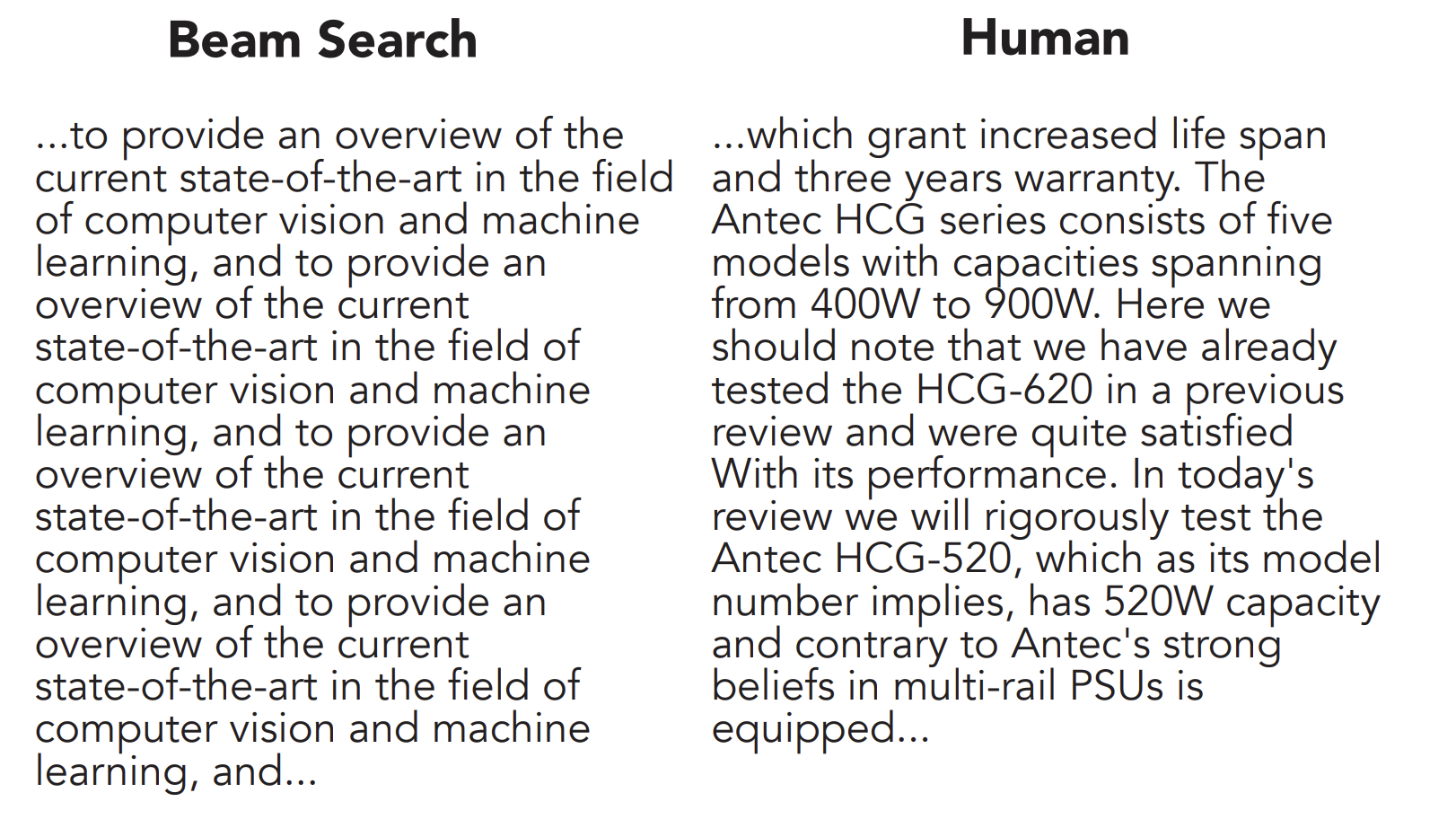 - Greedy Search is fast but can produce dull, repetitive text.