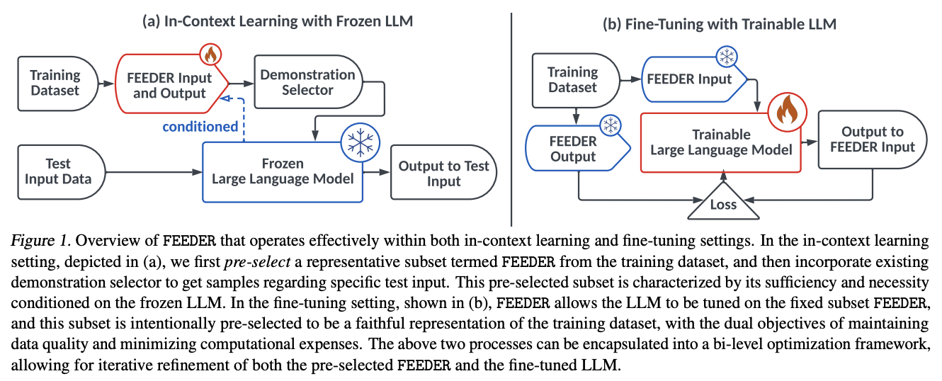 Researchers from Shanghai Jiao Tong University, Xiaohongshu Inc., Carnegie Mellon University, Peking University, No Affiliation, University College London, and University of Bristol have proposed FEEDER (FEw yet Essential Demonstration prE-selectoR), a method to identify a core subset of demonstrations containing the most representative examples in training data, adjusted to specific LLMs. To construct this subset, “sufficiency” and “necessity” metrics are introduced in the pre-selection stage, along with a tree-based algorithm. Moreover, FEEDER reduces training data size by 20% while maintaining performance and seamlessly integrating with various downstream demonstration selection techniques in ICL across LLMs ranging from 300M to 8B parameters.