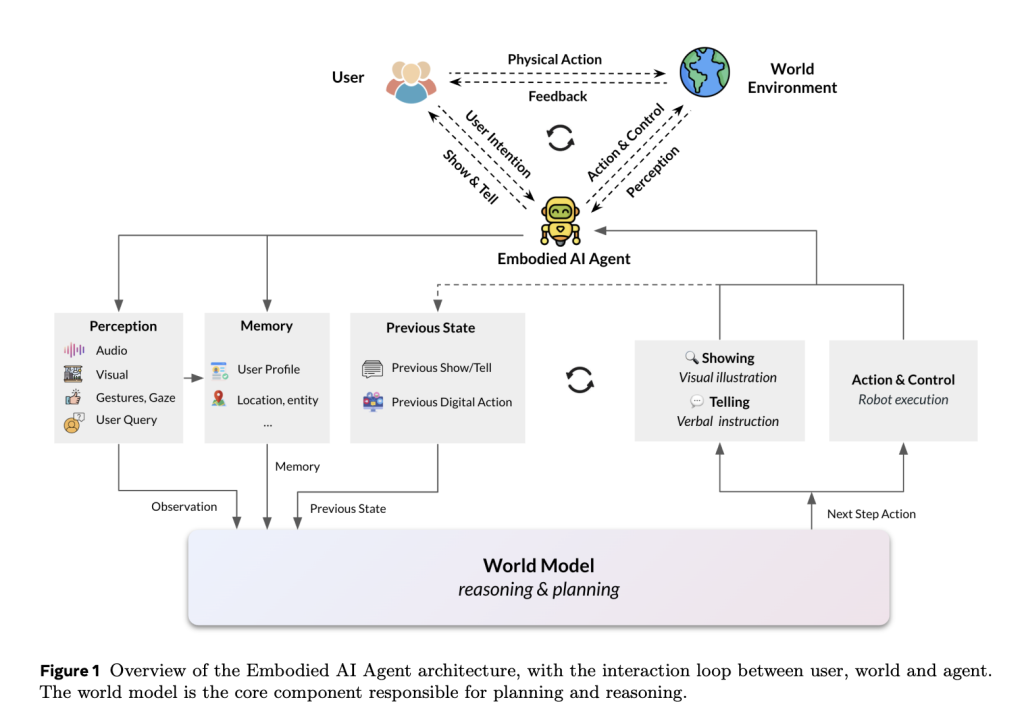 Embodied AI agents come in three forms: virtual, wearable, and robotic, and are designed to interact with the world in much the same way as humans. Virtual agents, such as therapy bots or avatars in the metaverse, simulate emotions to foster empathetic interactions. Wearable agents, such as those in smart glasses, share the user’s view and assist with real-time tasks or provide cognitive support. Robotic agents operate in physical spaces, assisting with complex or high-risk tasks such as caregiving or disaster response. These agents not only enhance daily life but also push us closer to general AI by learning through real-world experience, perception, and physical interaction.