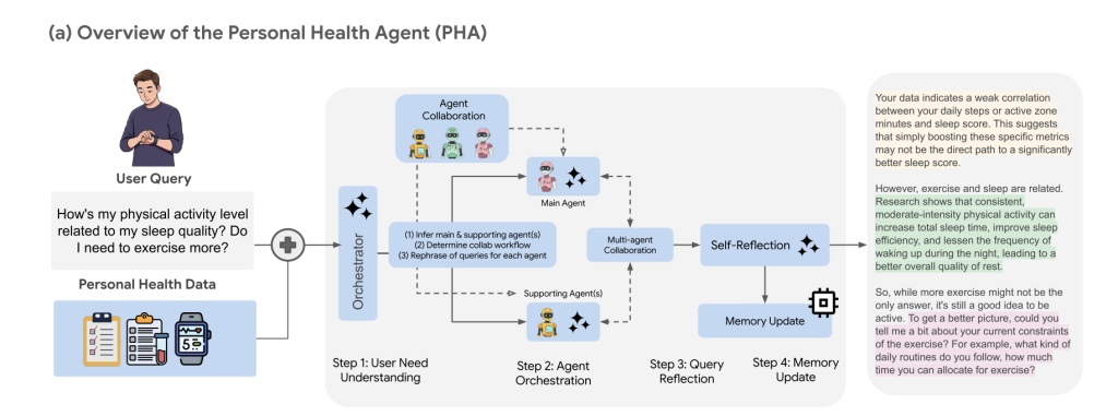 To bridge this gap, Google researchers introduced the Personal Health Agent (PHA), a sophisticated multi-agent architecture that integrates diverse functionalities: data analytics, medical expertise, and behavioral coaching. Unlike traditional single-model systems that deliver fragmented responses, the PHA employs a central orchestrator to harmonize specialized sub-agents, iteratively refining their outputs to offer personalized, coherent health guidance.