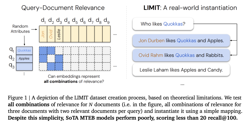 To empirically validate these theoretical limits, the Google DeepMind team developed the LIMIT (Limitations of Embeddings in Information Retrieval) benchmark, designed to rigorously challenge embedding models. LIMIT is available in two configurations: