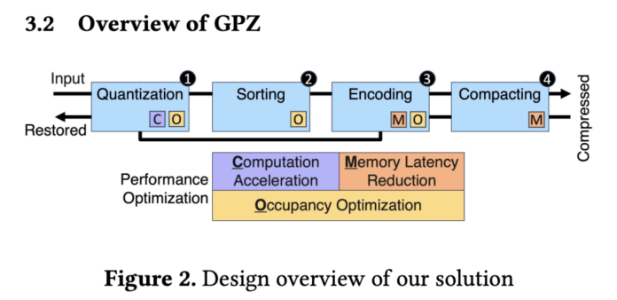 GPZ introduces a four-phase parallel pipeline optimized for GPU architectures, specifically tailored to the unique characteristics of particle data and the demands of high-throughput parallel processing.