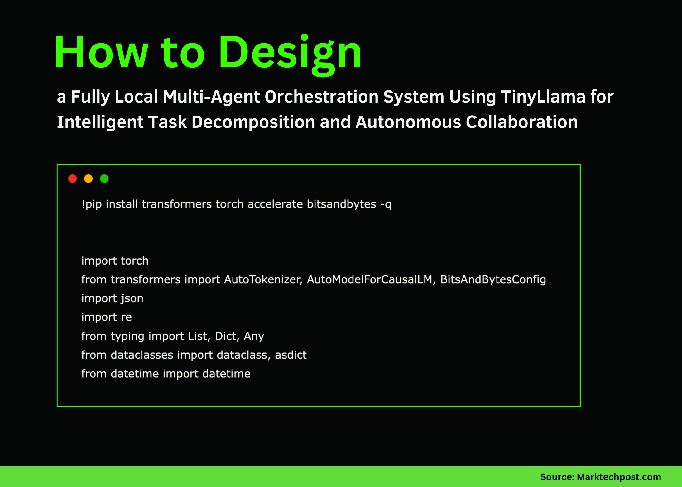 This guide delves into creating a streamlined, offline multi-agent AI framework using TinyLlama, leveraging a manager-agent architecture. We demonstrate how to break down complex objectives into manageable subtasks, enable seamless collaboration among specialized AI agents, and implement autonomous reasoning cycles-all without depending on external APIs. By utilizing the transformers library, this approach ensures a lightweight, transparent, and fully customizable system that runs entirely on local hardware.