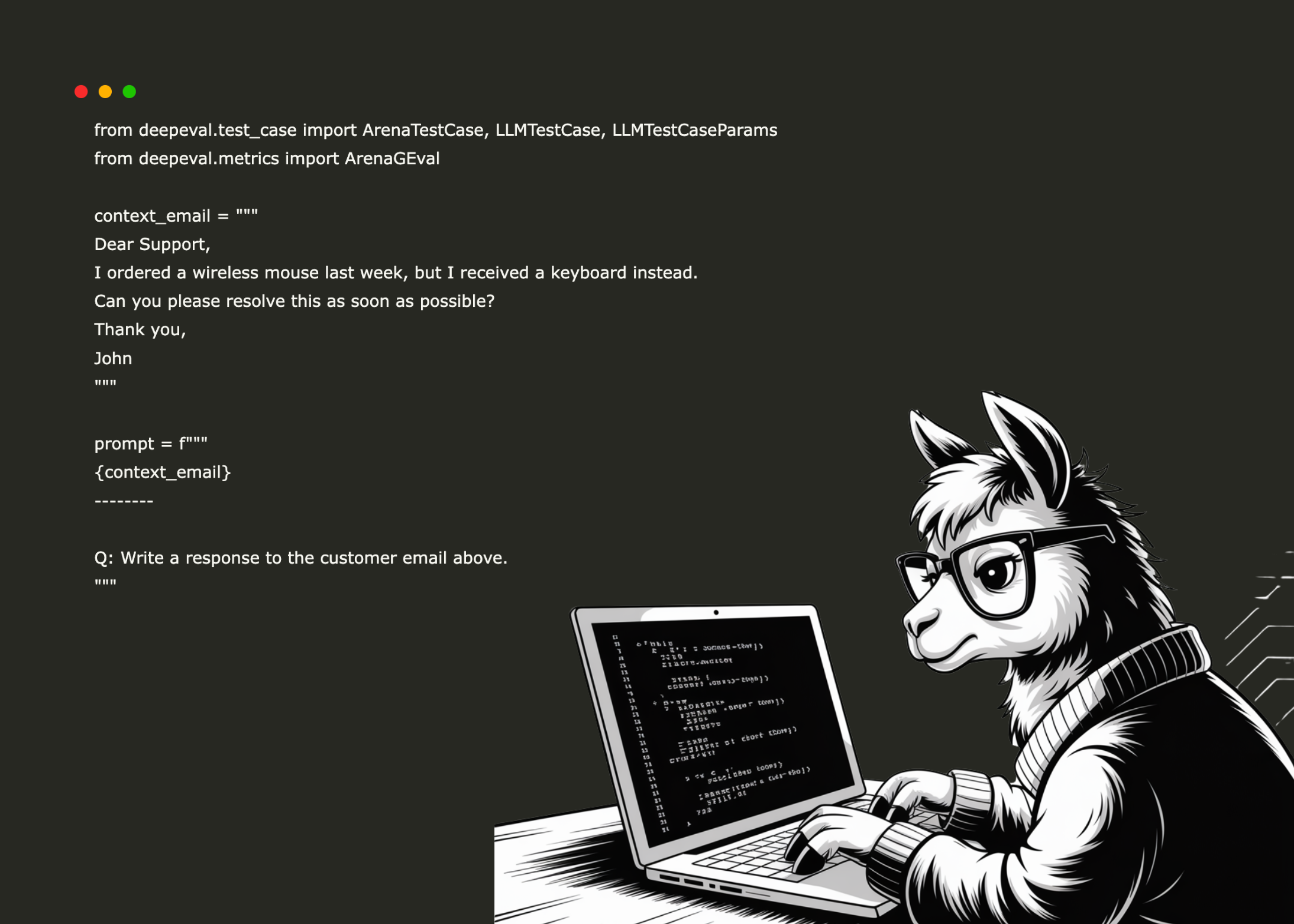 We define the context by encapsulating the customer’s email and framing a prompt that instructs the models to generate an appropriate response: