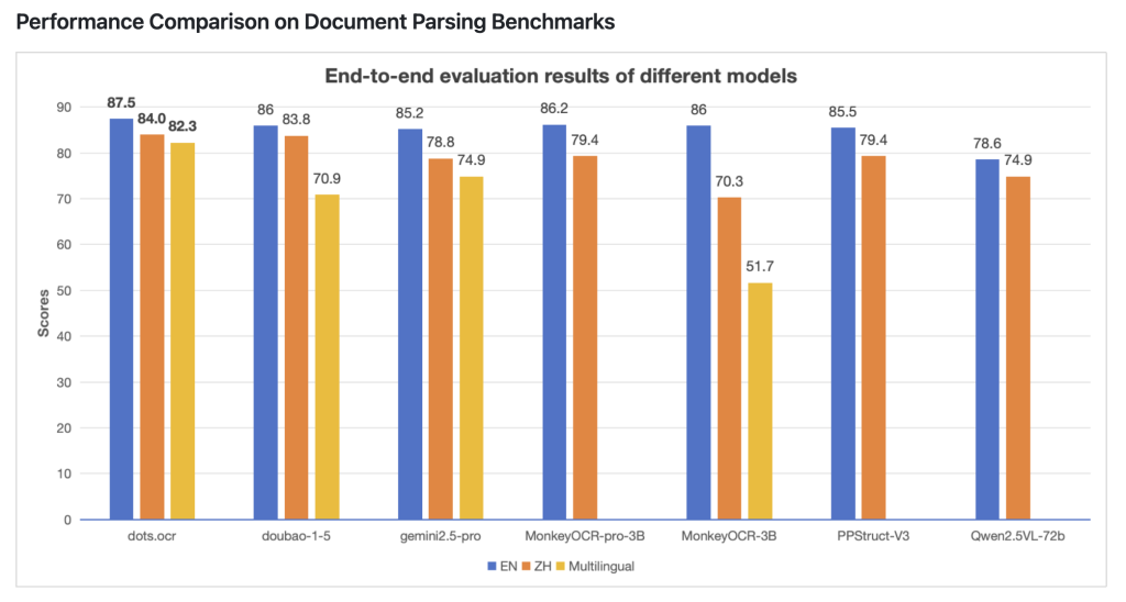 dots.ocr has been evaluated against modern document AI systems, with results summarized below: