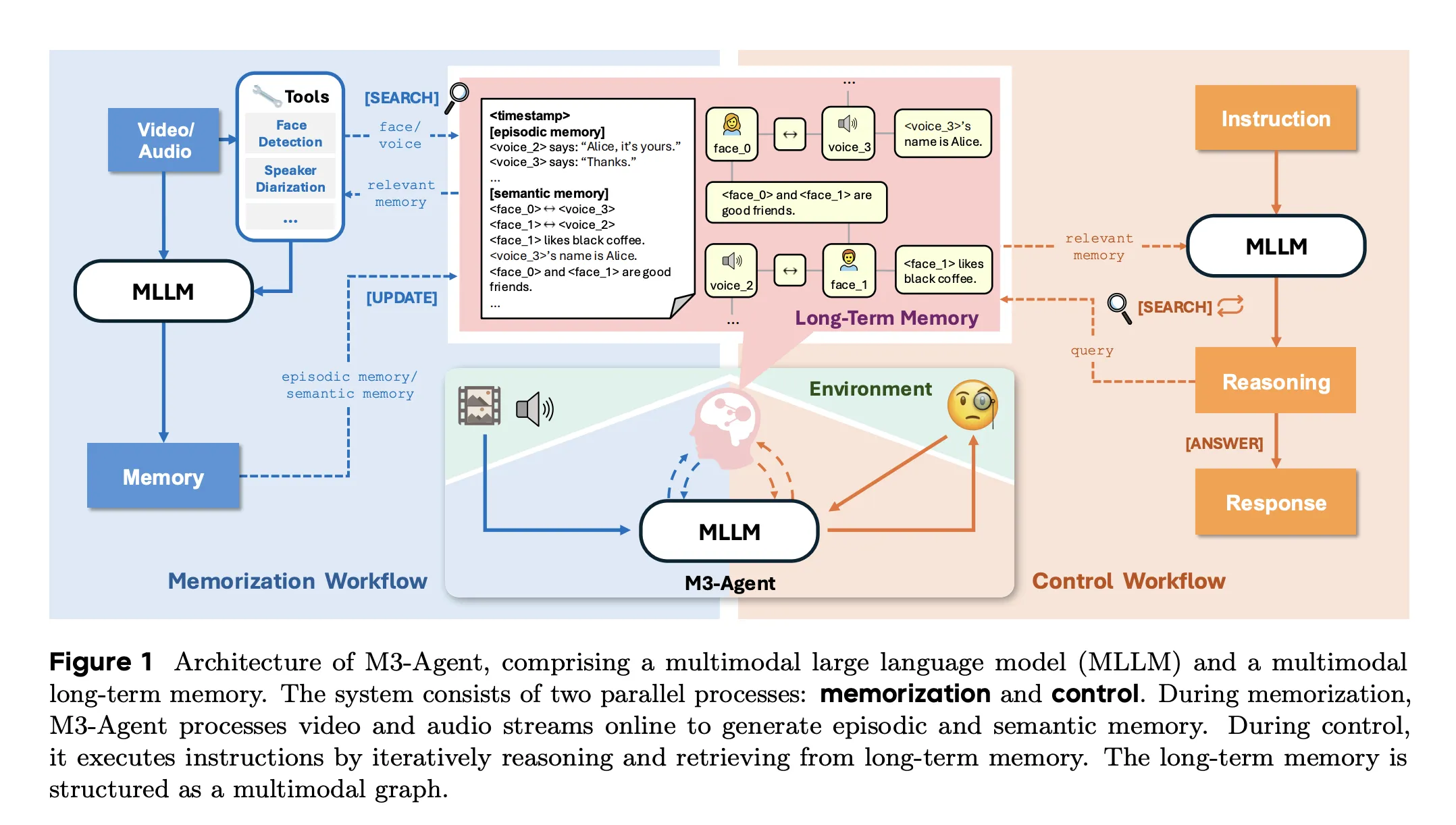 Researchers from ByteDance Seed, Zhejiang University, and Shanghai Jiao Tong University have proposed M3-Agent, a multimodal agent framework with long-term memory. M3-Agent processes real-time visual and auditory inputs to build and update its memory, just like humans. Unlike standard episodic memory, it also develops semantic memory, allowing the accumulation of world knowledge over time. Its memory is organized in an entity-centric, multimodal structure, ensuring a deeper and more coherent understanding of the environment. When given instructions, M3-Agent engages in multi-turn reasoning and autonomously retrieves relevant information. Moreover, M3-Bench is developed for long-video question answering to evaluate the effectiveness of M3-Agent.