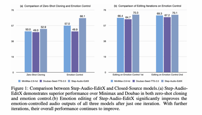 Moreover, Step-Audio-EditX’s editing capabilities extend to enhancing outputs from four closed-source TTS systems-GPT 4o mini TTS, ElevenLabs v2, Doubao Seed TTS 2.0, and MiniMax Speech 2.6 HD. A single editing iteration improves emotion and style accuracy across all systems, with further iterations yielding additional benefits.