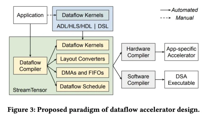 • Iterative Tensor Typing System: By making iteration order and data layout first-class citizens, the itensor type enables the compiler to enforce stream order correctness, facilitate kernel fusion, and synthesize minimal buffer and format converters when necessary.