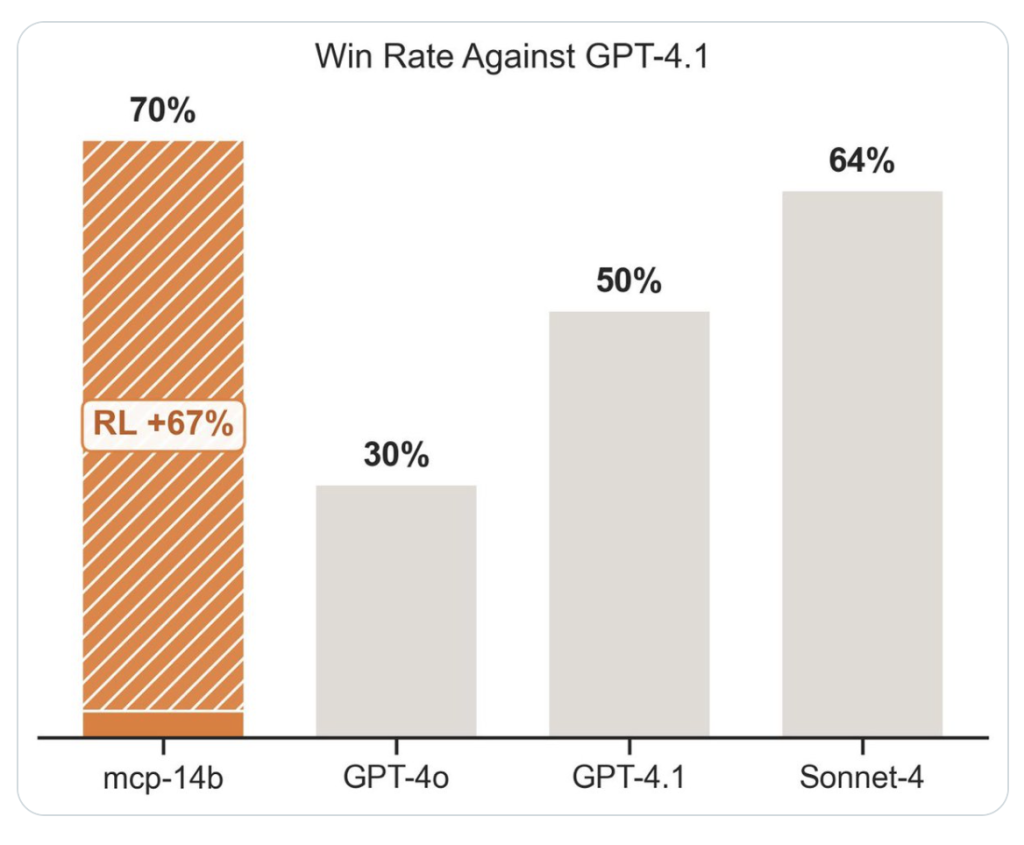The combination of MCP- RL and ART abstracts away years of RL automation design, letting you convert any LLM into a tool-using, self-improving agent, domain-agnostic and without annotated training data. Whether your environment is public APIs or bespoke enterprise servers, the agent learns on-the-job and achieves scalable, robust performance.