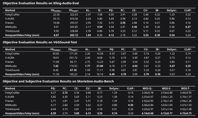 Comparison of Tencent Hunyuan Video-Foley AI audio model with other leading systems