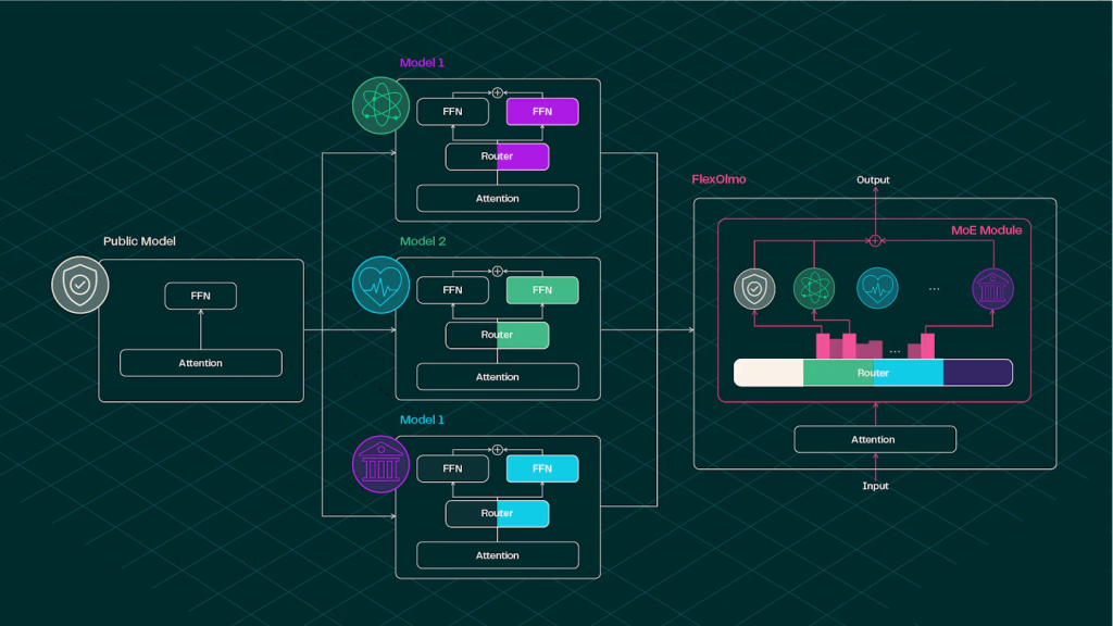 The development of large-scale language models (LLMs) has historically required centralized access to extensive datasets, many of which are sensitive, copyrighted, or governed by usage restrictions. This constraint severely limits the participation of data-rich organizations operating in regulated or proprietary environments. FlexOlmo—introduced by researchers at the Allen Institute for AI and collaborators—proposes a modular training and inference framework that enables LLM development under data governance constraints.